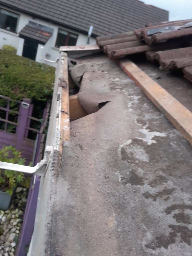 This customer had noticed that they could see day light through a small gap in the garage roof – on investigating I found that a section of the roof felt (at the eves) was in poor condition. I stripped back some tiles and was then able to make a repair using a eve tray slipped under the damage felt and screwed into place – a stitch in time !